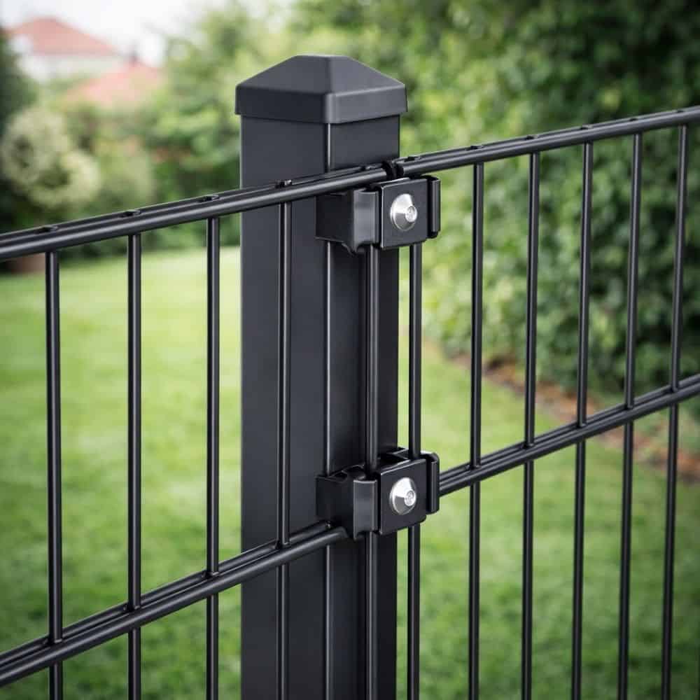 Der Steher besteht aus einem hochwertigen Rechteckprofil 60×40 mm mit 1,5 mm Wandstärke und ist optimal auf unsere Doppelstabmatten 6/5/6 mm sowie 8/6/8 mm abgestimmt.